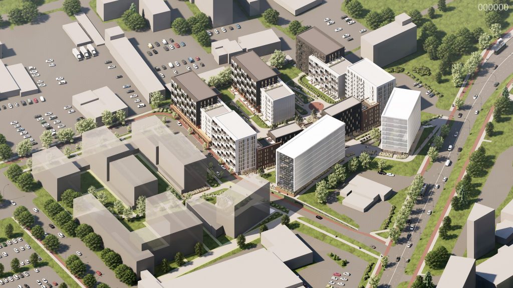 Didžiąją dalį, apie 25 000 kv. m projekto ploto užims gyvenamosios paskirties pastatai, kuriuose planuojama 500 butų.