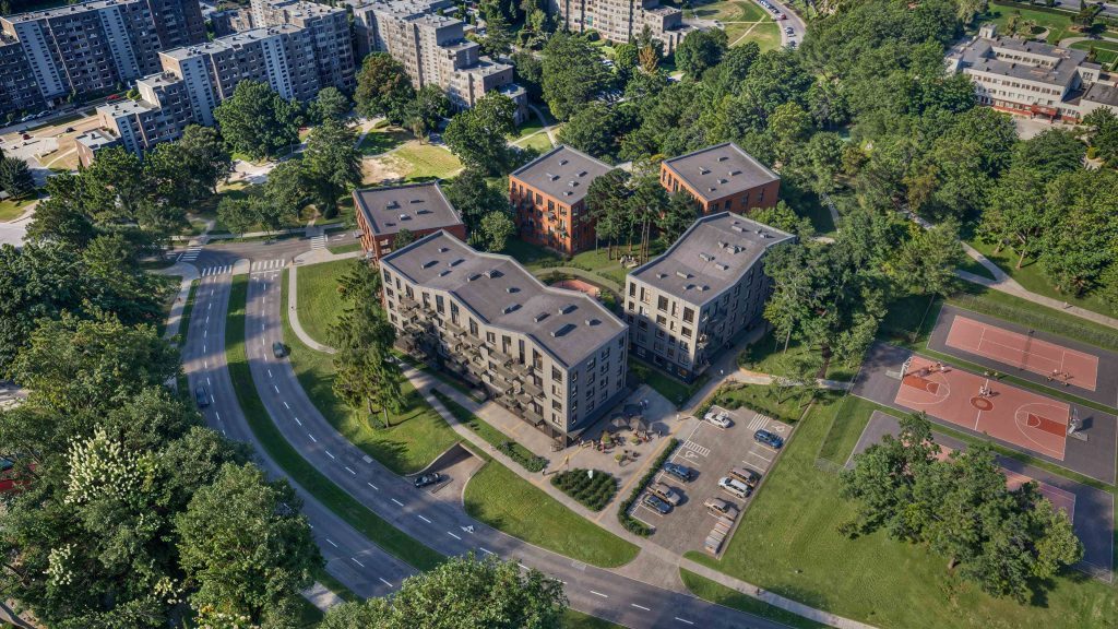 Išskirtinai žalioje aplinkoje statomame projekte numatyti 5 aukštų namai su liftais, antžeminė ir požeminė automobilių aikštelės, dviračių saugyklos. Vidiniame kieme – vaikų žaidimų aikštelės, suaugusiems pritaikytos sporto ir laisvalaikio zonos, projekto teritorija bus stebima vaizdo kameromis. Visgi, be visų šių privalumų, projektas Pašilaičiuose labiausiai išsiskirs savo architektūriniais sprendiniais, kuriuos kūrė „Fragement“ ir „Nytt“ architektų studijos. Pagrindinis jų siekis buvo išsaugoti esminę teritorijos vertybę – želdinius ir kuo natūraliau įterpti naujus pastatų tūrius tarp brandžių medžių. „Siekiame, kad greta „Tautų vienybės“ parko esanti teritorija turi būti ne pakeista iš aplinkos išsiskiriančiu svetimkūniu, o tik švelniai papildyta nauju užstatymu. Pasirinkta taškinių tūrių koncepcija papildo jau susiformavusį gamtinį karkasą, natūralių tonų spalviniai sprendimai taip pat dera prie žalių, žemiškų parko atspalvių. Projekto pirmame aukšte bus formuojamos komercinės patalpos, apsuptos bendruomenei prieinamomis erdvėmis, o vidinis kiemas – uždaras, skirtas tik gyventojams.“, – pasakoja projekto architektas Povilas Čepaitis.