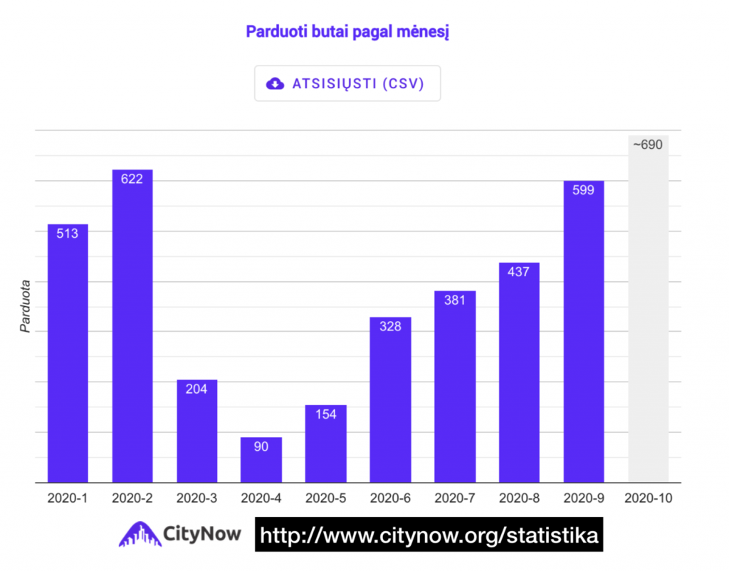 Paprastai tokios ataskaitos viešinamos mėnesio pradžioje, o dabar jas galite pasiekti sau patogiu metu. Patogumo dėlei, pridėjome galimybę eksportuoti duomenis CSV formatu (pvz. jeigu norite geriau pritaikyti savo turiniui). Atvirų duomenų skilties duomenimis galite naudotis laisvai, tik prašome kaip šaltinį nurodyti CityNow. Vertingiausi duomenys (istoriniai duomenys, kainų dinamika, kiekvieno individualaus projekto ar buto duomenys ir t.t.) toliau bus prieinami tik mūsų partneriams – PREMIUM nariams.