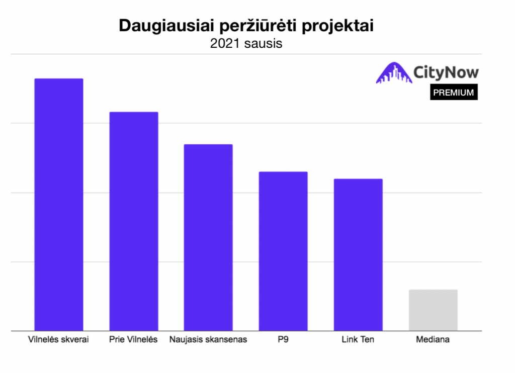 Daugiausiai peržiūrų sulaukė projektai: Vilnelės skveras, Prie Vilnelės, P9, Link Ten, Naujasis Skansenas.