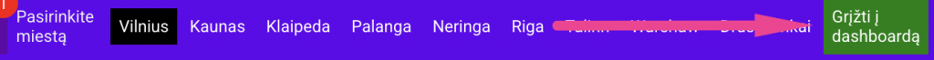 Naudotis įprastai – arba iškviesti viso miesto dashboardą per top navigaciją “Eiti į Dashboardą”: